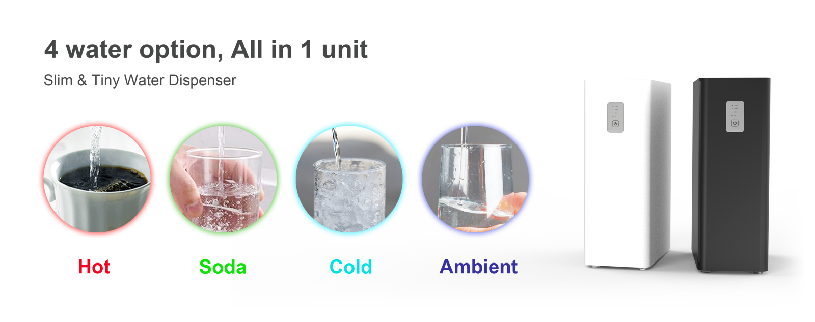 Slim Under sink water dispenser with all 4 water option Cold/Hot/Sparkling/Ambient water.