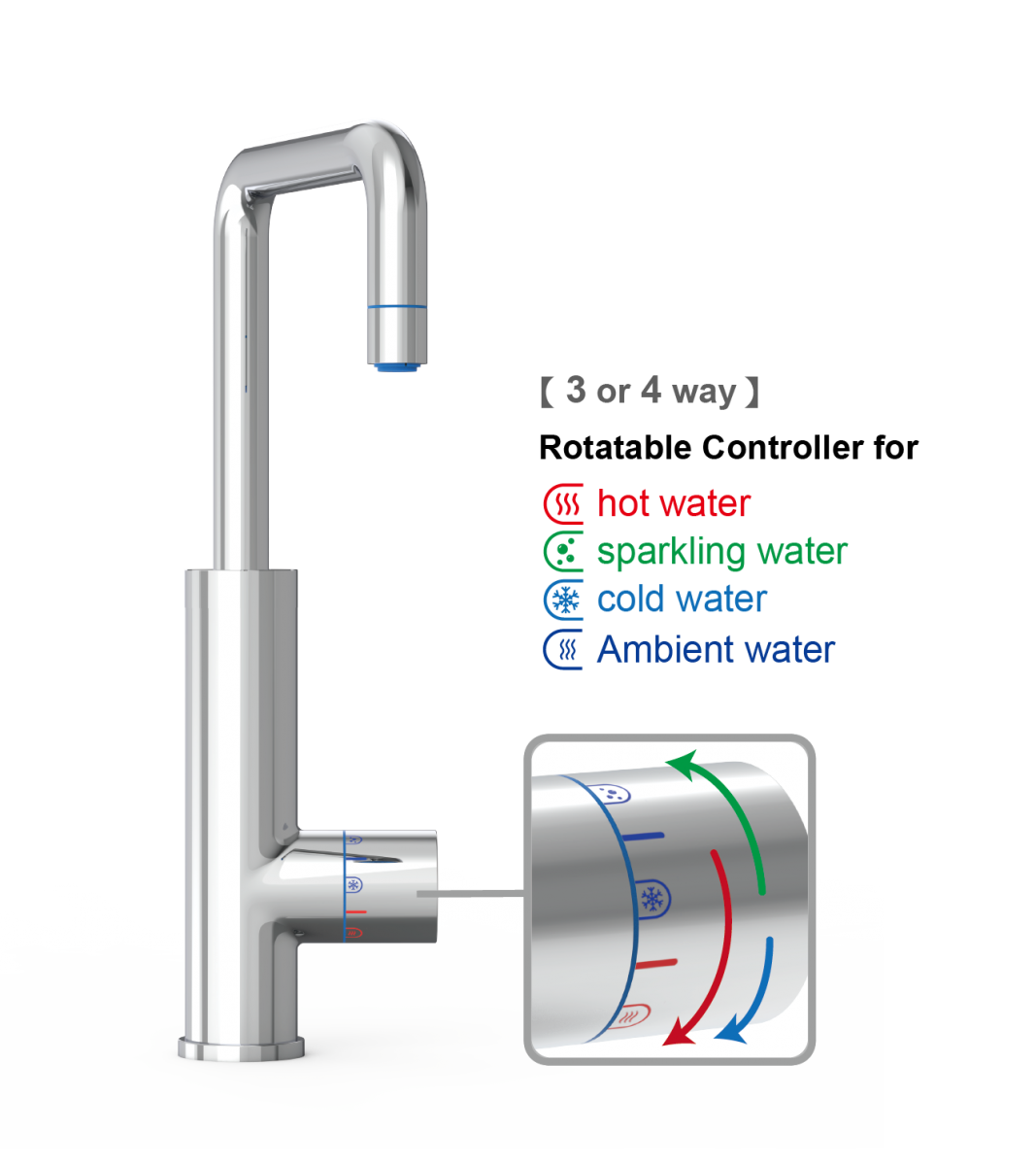 ●  Left or Right (Rotate Controller) - cold / sparkling / hot (ambient) water