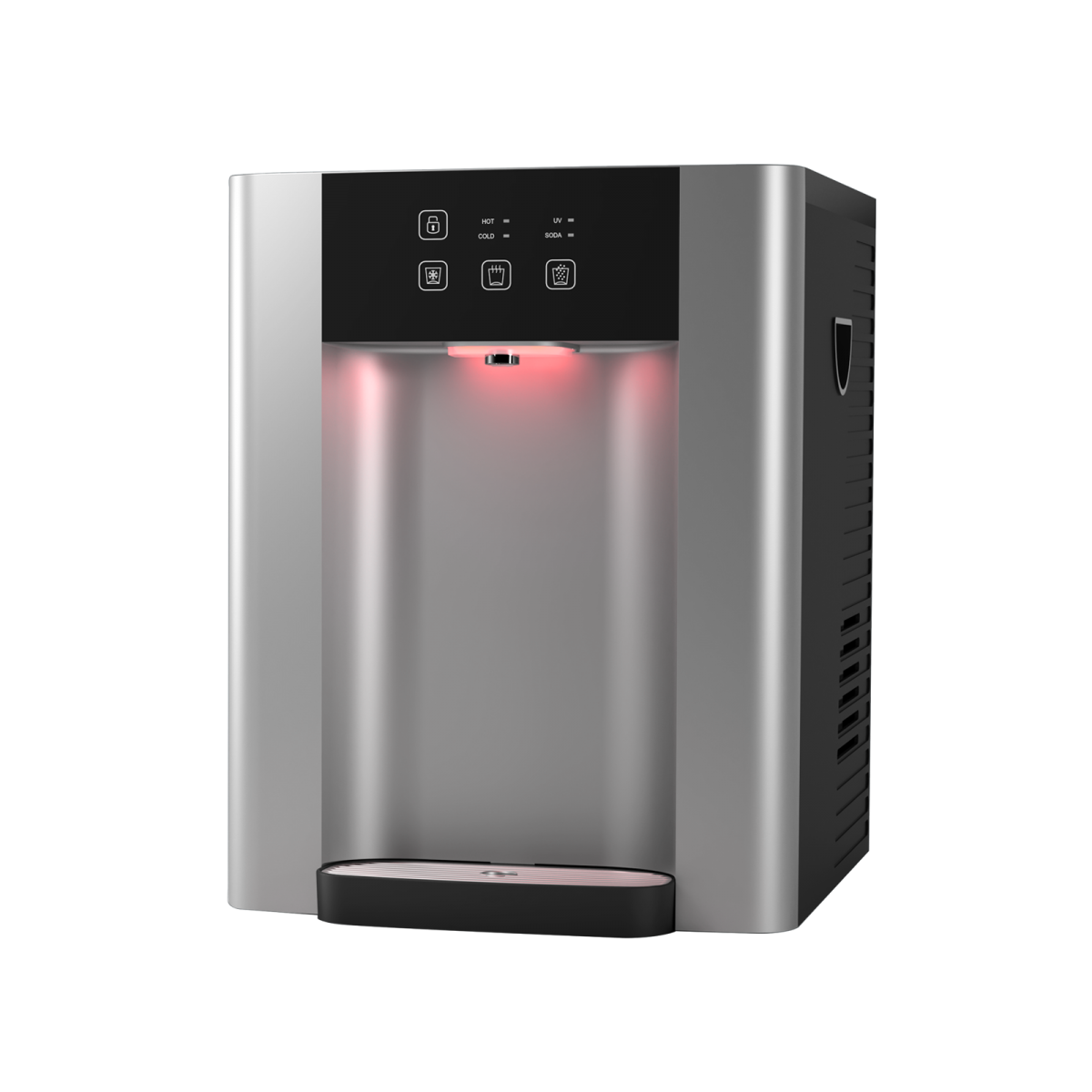 Designed to locate near the outlet with instant start system to make sure water is fully sterilized before dispense. Replaceable high efficiency UV light eliminates 99.9% of germs without increasing water temperature or affecting the taste of cold and sparkling water due to heat generated from continuously on UV light