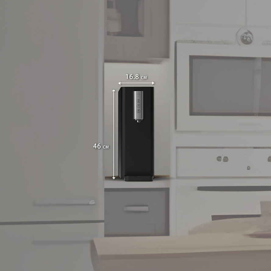 M107 is an ultra slim table top sparlking water dispenser designed for kitchens with limited space.