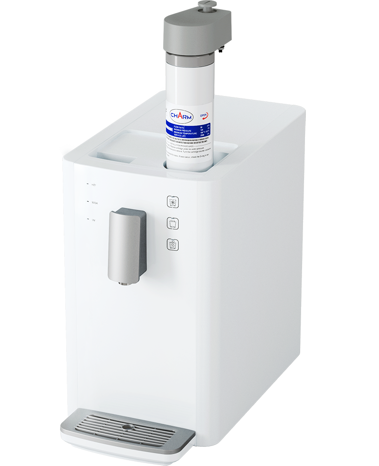 Designed to locate near the outlet with instant start system to make sure water is fully sterilized before dispense. Replaceable high efficiency UV light eliminates 99.9% of germs without increasing water temperature or affecting the taste of cold and sparkling water due to heat generated from continuously on UV light.